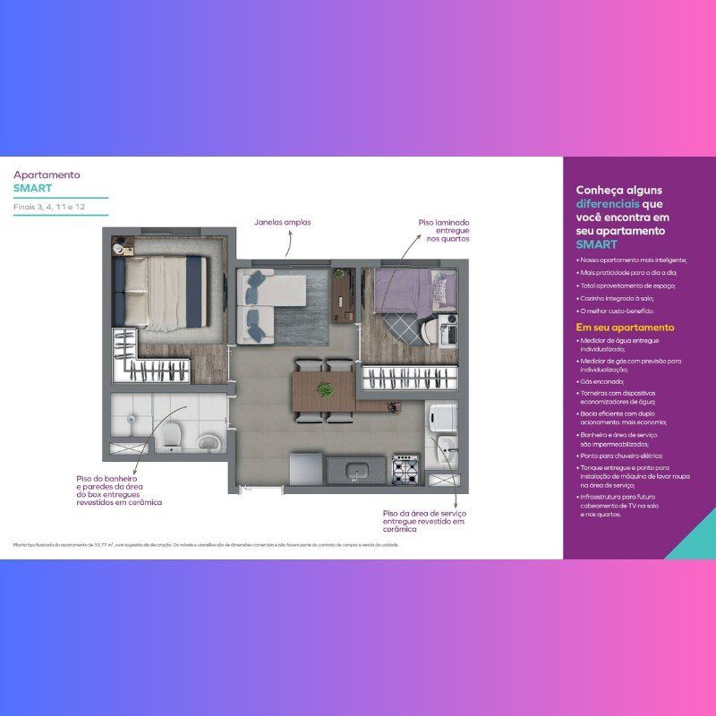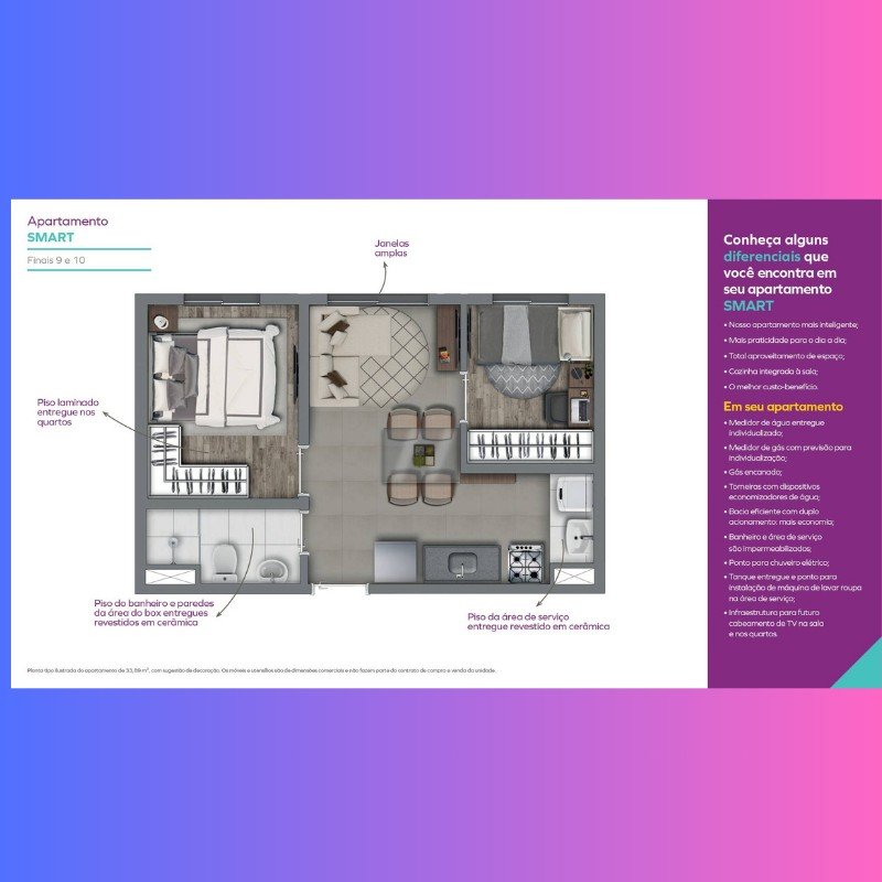 | Empreendimento - Apartamentos | - | 33 m² | 33 m² | 2 | 0 | 1 | 1 |