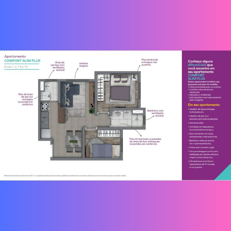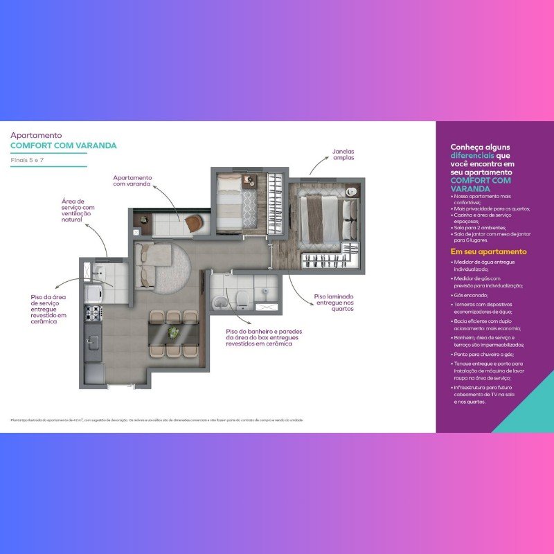 | Empreendimento - Apartamentos | - | 42 m² | 42 m² | 2 | 0 | 1 | 1 |